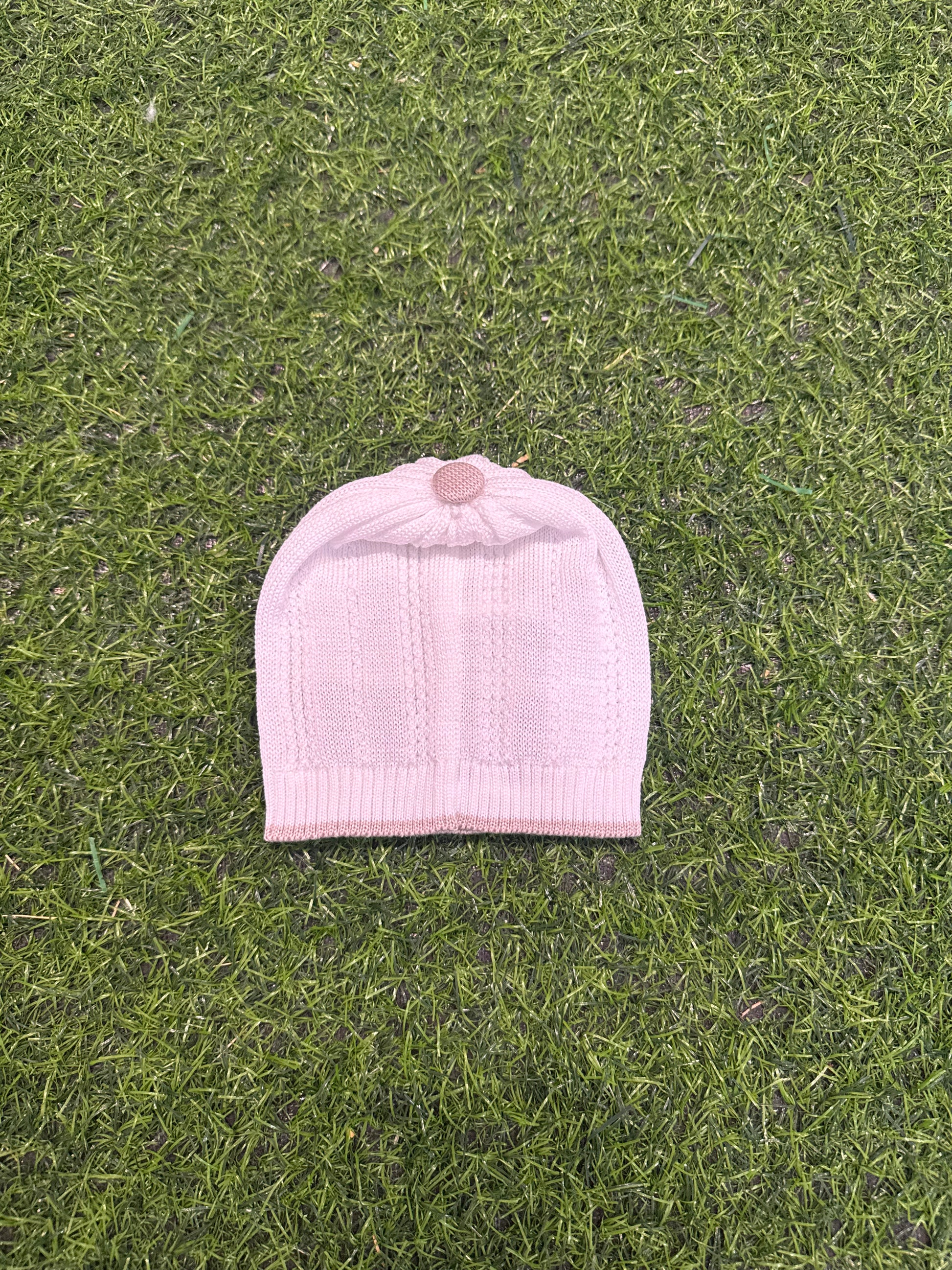 MARLU’ - cappellino in filo di cotone bianco/noce/cielo corredino p/e