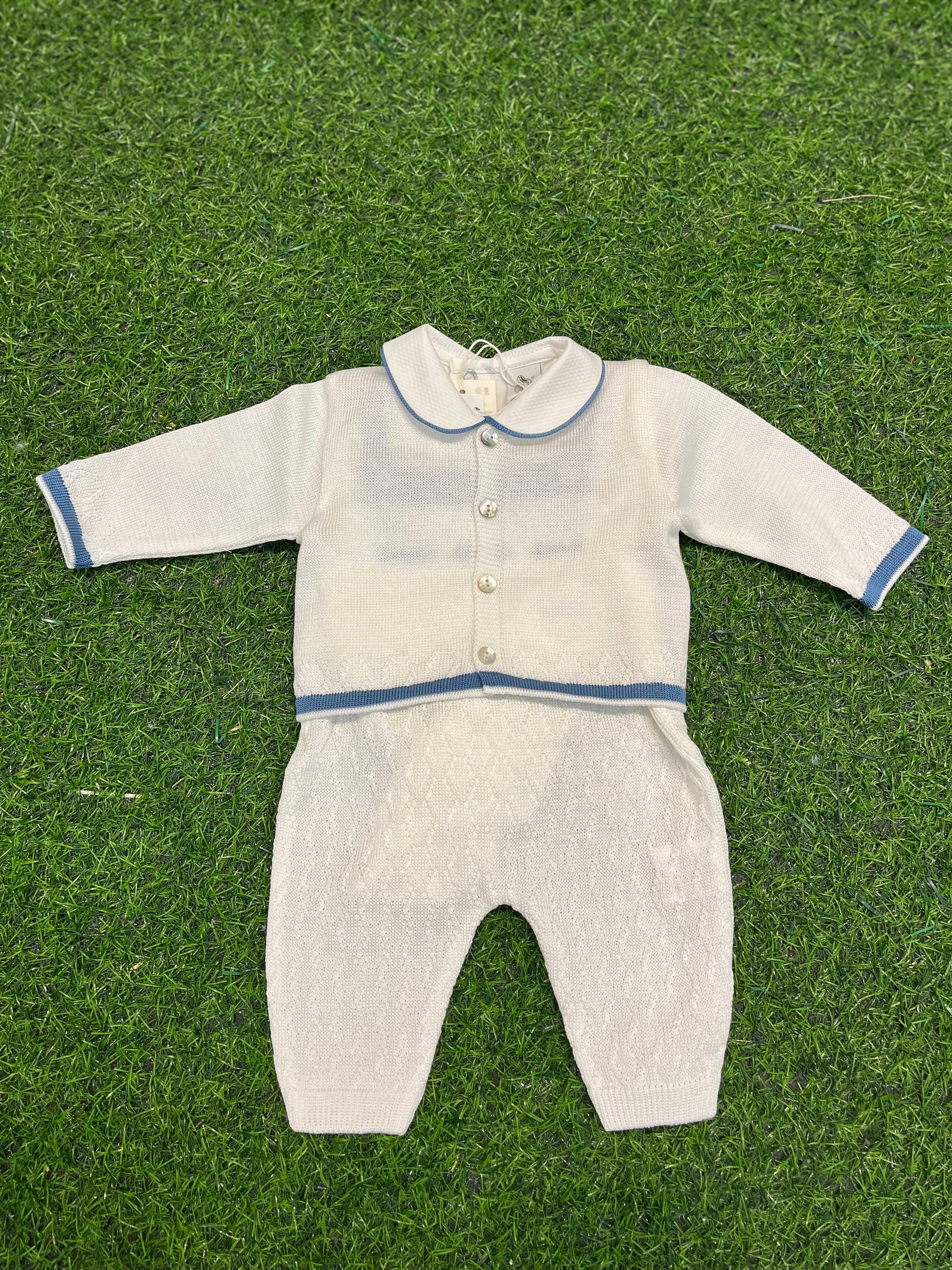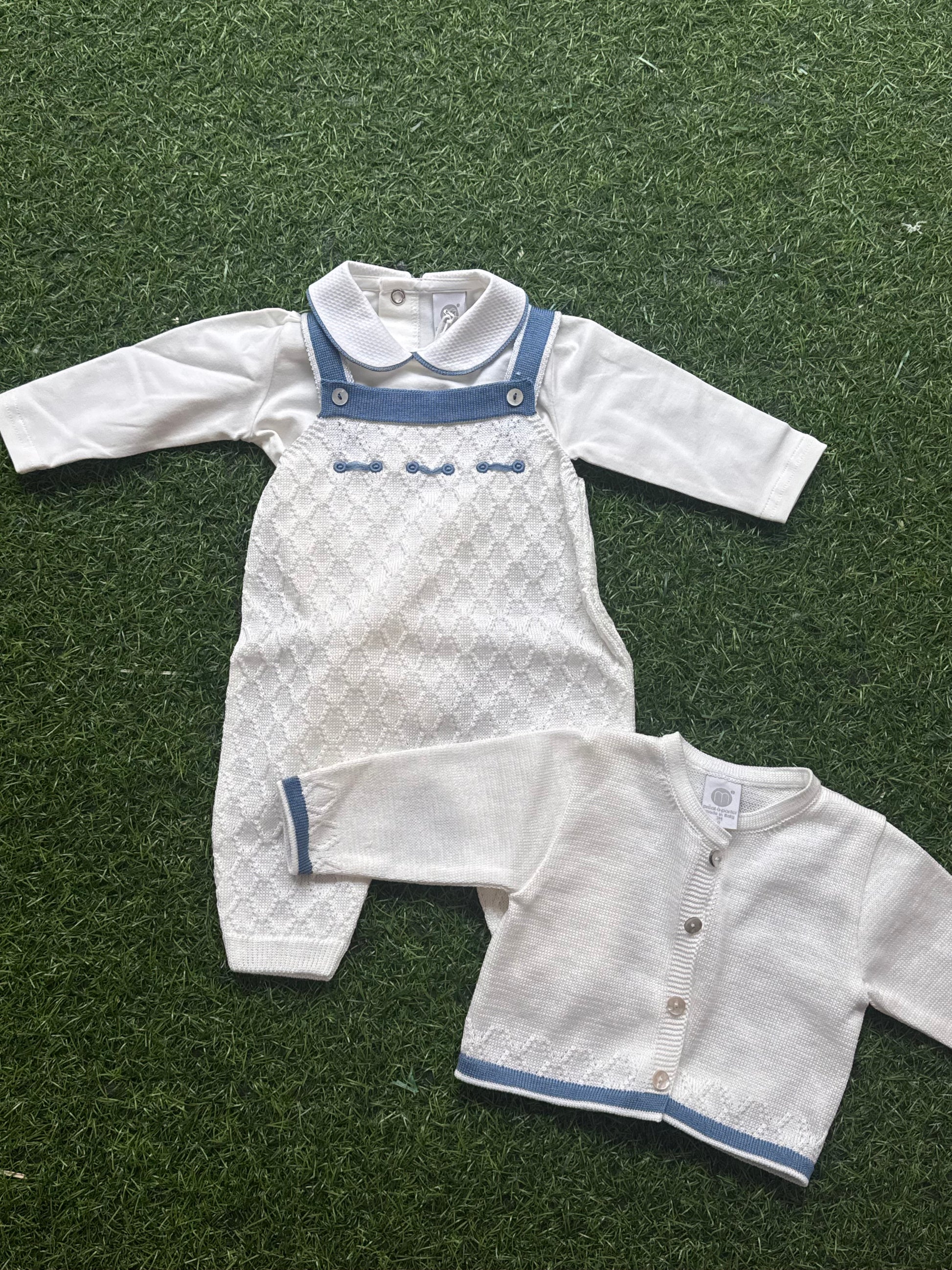 MARLU’ - set 3pz salopette in filo di cotone vaniglia/oceano corredino p/e